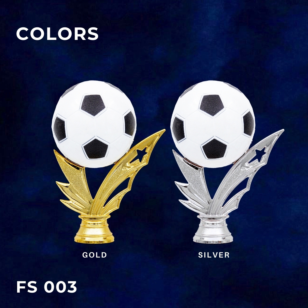 FIGUR BOLA HITAM PUTIH Tinggi : 14 cm Lebar : 10 cm tersedia dalam 2 warna dasar/tangkai (gold dan silver) dikombinasikan dengan warna bola (hitam/putih)